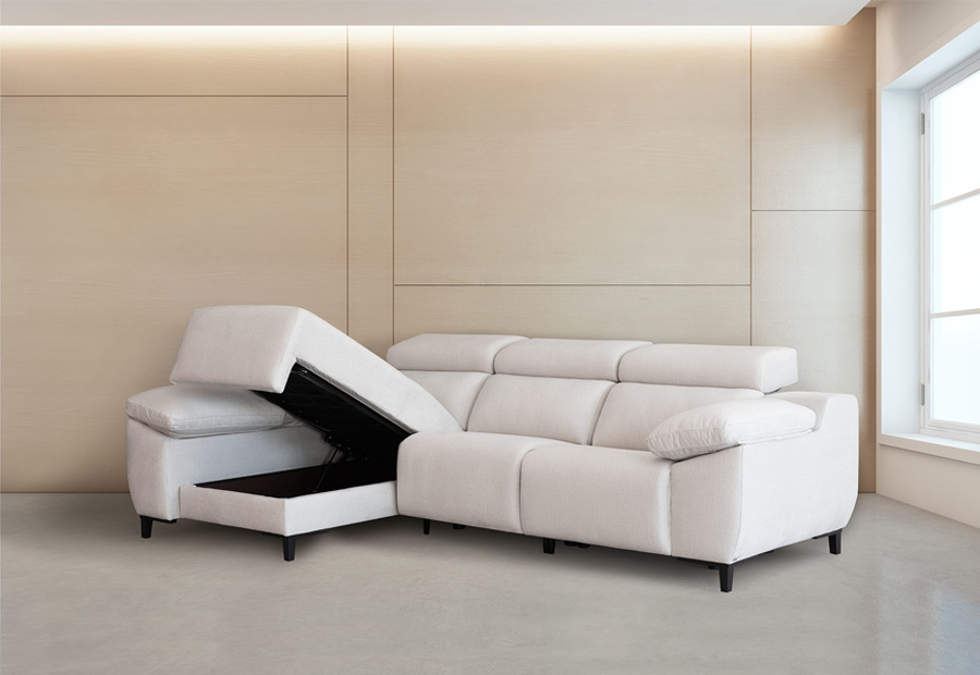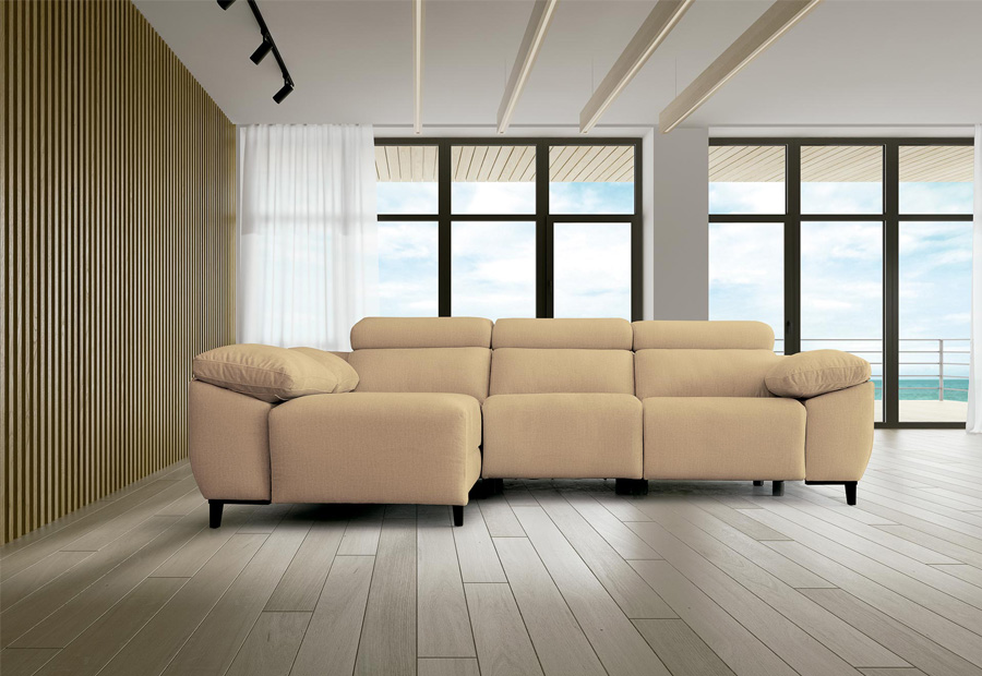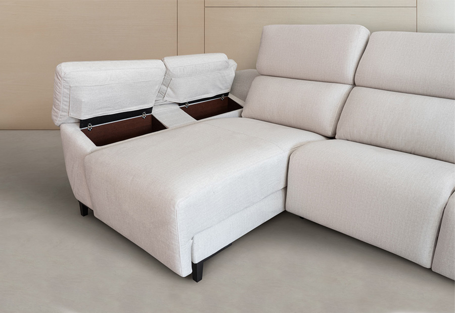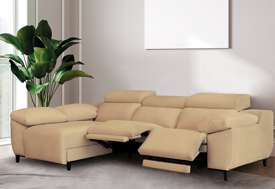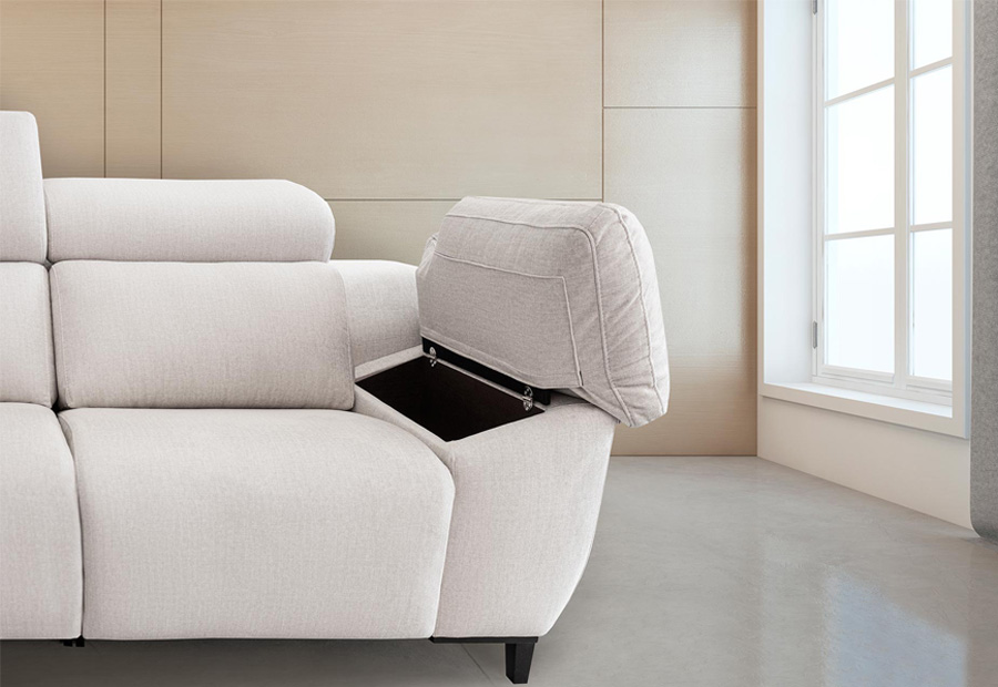 Sofá equipado con un sistema de relax eléctrico doble de serie, permite ajustar la posición de los asientos para un confort personalizado.