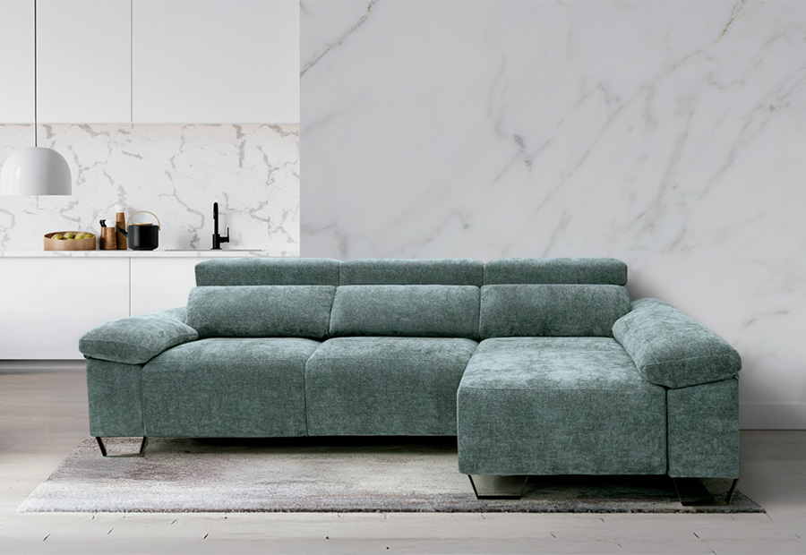 Los respaldos reclinables multiposición, con cabezal y riñonera extra suaves, se adaptan perfectamente a tus momentos de descanso. Incluye detalles premium como patas metálicas.