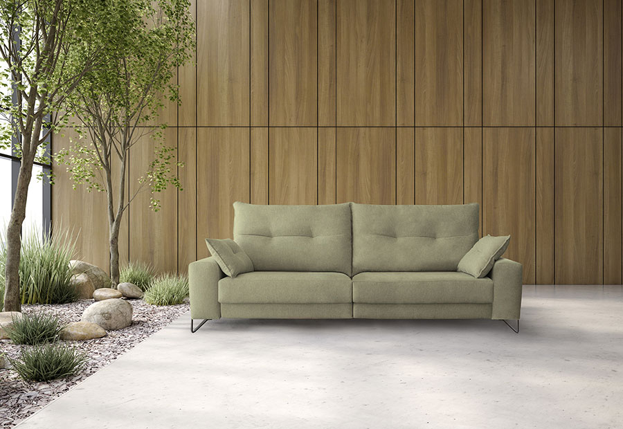 Asientos de poliuretano de 35 KG de sentada suave, desenfundable con facilidad, altura desde el suelo de 52 cms. Relax eléctrico doble de serie. Muelle ZIG-ZAG